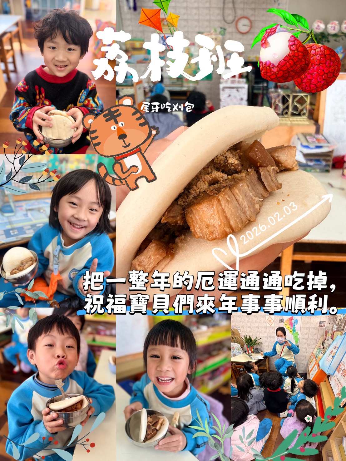 熱熱鬧鬧迎新年,幼兒園也要一起感受傳統年節的幸福滋味!今天寶貝們開心享用象徵「包好運、掛福氣」的尾牙刈包,在香噴噴的美食中學習節慶文化,感受團圓與分享的快樂,為新的一年留下甜甜的回憶 ❤️